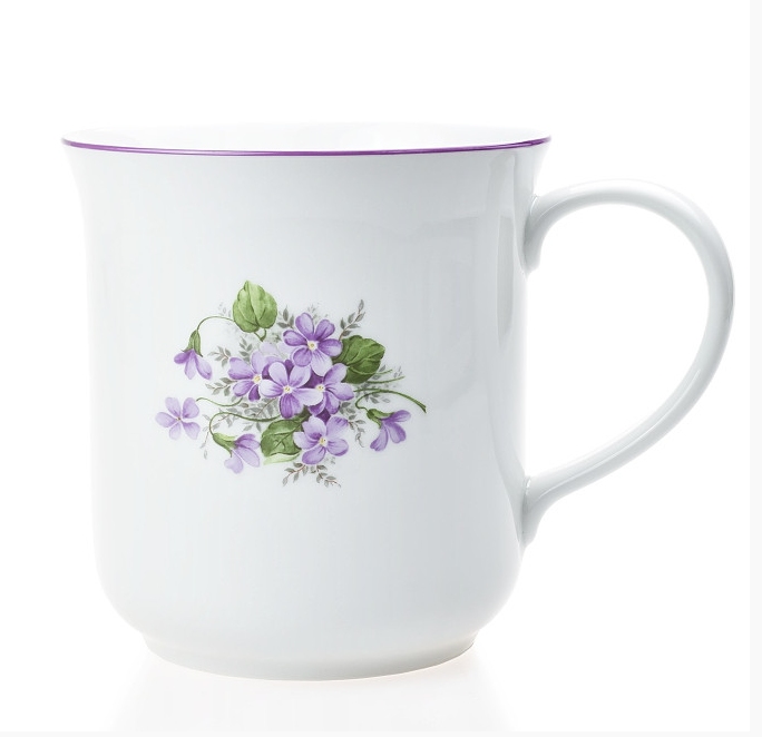 Porcelánový veľký XXL hrnček s dekorom fialiek. Kvalitný Karlovarský porcelán.