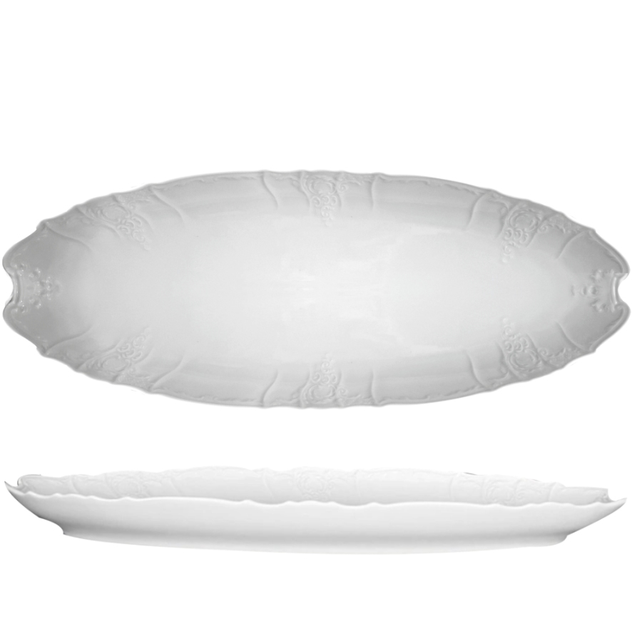 Bernadotte misa na ryby je veľká misa vhodná na veľké stolovanie, prípadne na podávanie väčšej ryby. Je biela bez dekoru v druhej akosti.