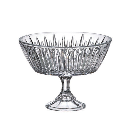 Krištáľová misa na nohe Bohemia Venus má elegantný dizajn s lúčovým brusom po celom svojom obvode. Dóza stojí na štíhle nôžke, ktorá jej dodáva spolu s brusom punc luxusu. Vnútro dózy je s rovným hladným dnom, ideálne na servírovanie drobných zákuskov, makaróniek a rôznych pochutín.