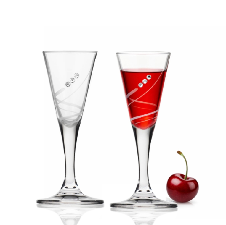 Poháre malibu na likéry a destiláty na krátkej nožičke budú vďaka svojmu menšiemu objemu obľúbenou voľbou pre aperitív pre vaše oslavy a stretnutia. Poháre sú vyrobené z kvalitnej krištalínovej skloviny metódou ťahanej nohy, úštny okraj je jemne fazetovo zabrúsený. Decentný tvar kalíškoviny dopĺňa dekor 34799. Každý pohár je ručne dekorovaný pravými kryštálmi s brilantným leskom.