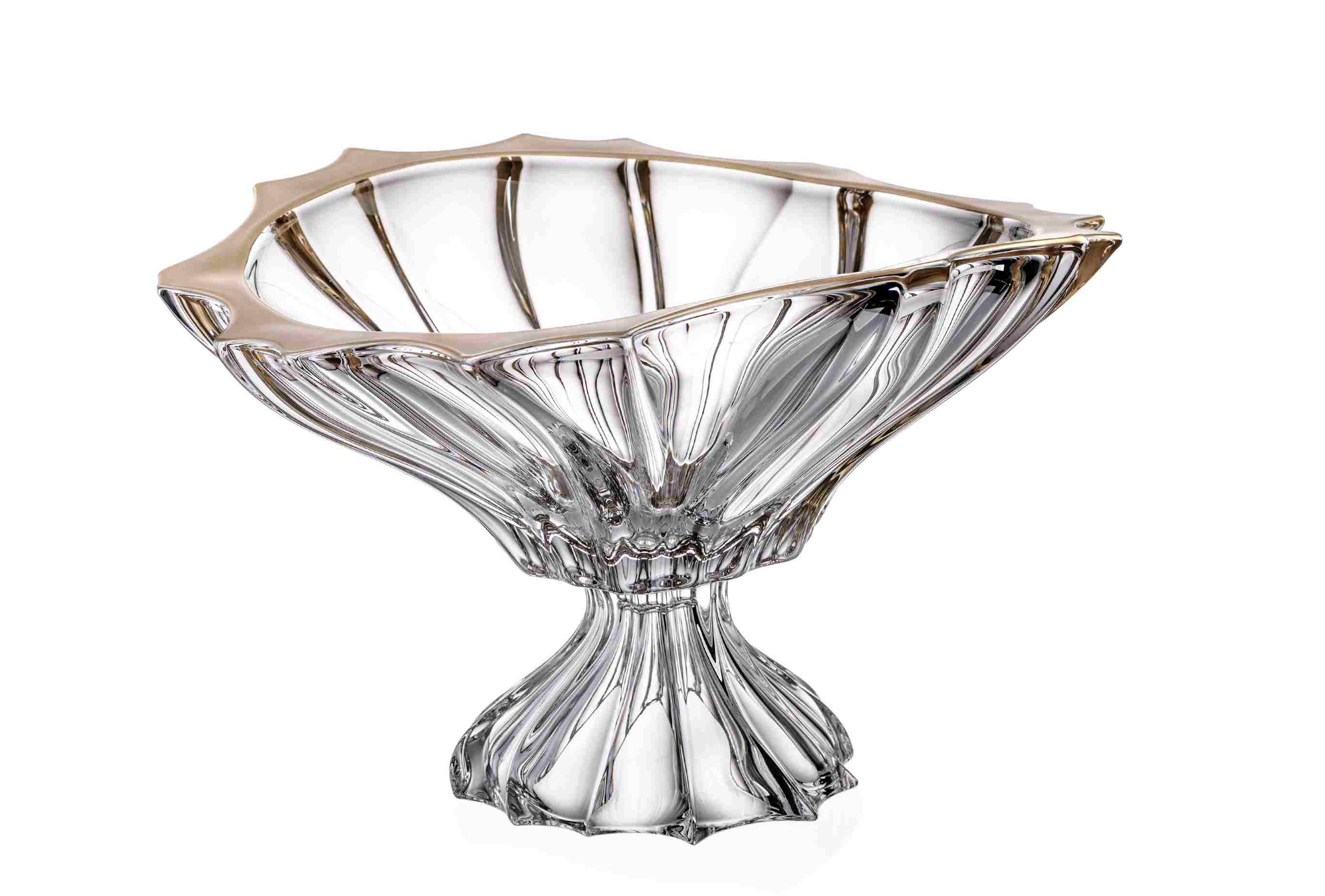 Aurum Crystal krištáľová misa na nohe so zlatým okrajom z dielne českých dizajnérov je zhotovená z prémiového bezolovnatého krištáľového skla. Tento typ skla sa vyznačuje vysokou čírosťou a leskom, vďaka týmto vlastnostiam zaujme aj tých najnáročnejších.