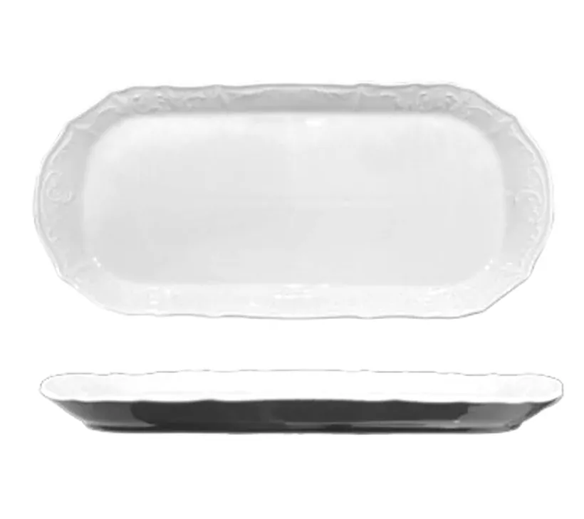 Bernadotte porcelánový 4 hranný podnos v bielom prevedení. Porcelánový podnos zaujme v každej vidieckej alebo provance jedálni vďaka svojmu tradičnému prevedeniu. Porcelán je zdobený jemným čipkovaným motívom v bielej farbe. Ide o kvalitný český porcelán Thun 1794, Karlove Vary a je vhodný na slávnostné príležitosti ako aj pre každodenné použitie.