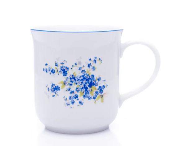 Porcelánový veľký XXL hrnček s dekorom nezábudok. Kvalitný Karlovarský porcelán.