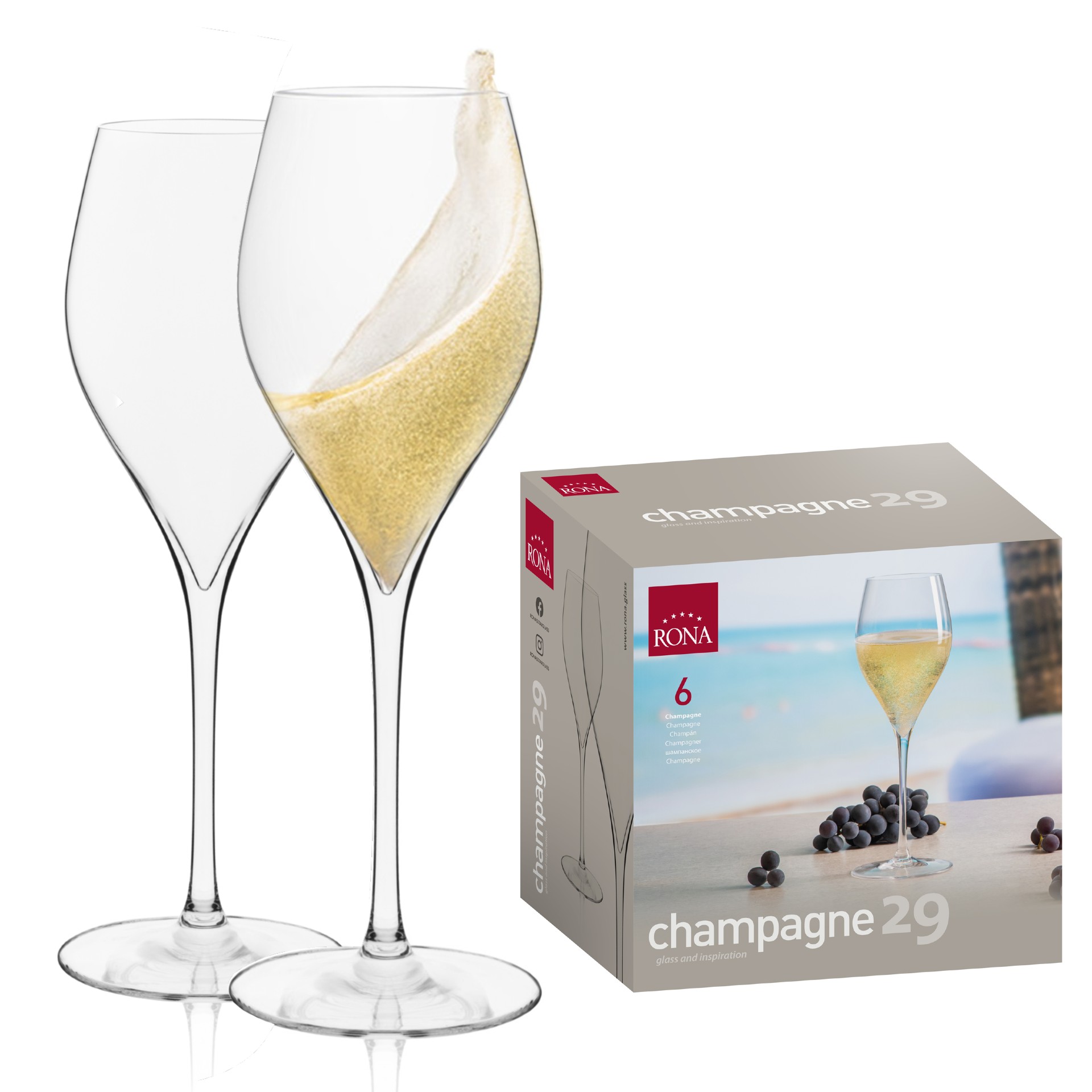 Poháre na prosecco alebo šampanské RONA zo série UNIVERSAL s objemom 290ml budú správnou voľbou ak si chcete naplno užiť chuť a výnimočné perlenie nápoja. Poháre majú tzv. diamantový tvar kalicha - širší stred umožní lepšie prevzdušnenie nápoja a zvýrazní chuťové vlastnosti. Ústny okraj je zúžený s fazetovým zabrúsením je príjemný na dotyk. Na rozdiel od hrubého zatavenia umožňuje vyššie hygienické nároky a dodáva kalichu profesionálny vzhľad.