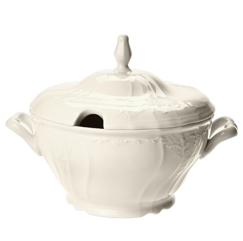 Bernadotte polievková misa s objemom 2,5L. Je vo farbe slonová kosť bez dekoru. Ide o samostatnú polievkovú misu na doplnenie obedovej súpravy, či tanierovej súpravy. Polievková misa sa skladá z dvoch častí - samostatná polievková misa a poklop s výrezom na naberačku. Túto polievkovú misu ponúkame aj lacnejšie v druhej akosti.