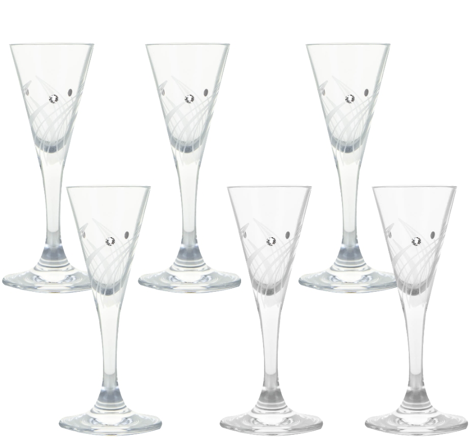 Poháre malibu na likéry a destiláty na krátkej nožičke budú vďaka svojmu menšiemu objemu obľúbenou voľbou pre aperitív pre vaše oslavy a stretnutia. Poháre sú vyrobené z kvalitnej krištalínovej skloviny metódou ťahanej nohy, úštny okraj je jemne fazetovo zabrúsený. Decentný tvar kalíškoviny dopĺňa dekor 35431 "Plamene" Každý pohár je ručne dekorovaný pravými kryštálmi s brilantným leskom.