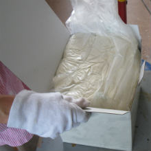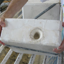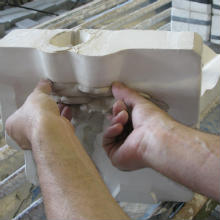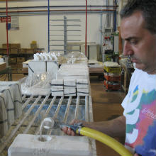 - Opory, alebo základne, na ktoré umiestňujeme kvety sú získané použitím dvoch k sebe pripojeným modulom. Zmes tekutého materiálu je vliateho do otvoru v moduloch, ktorý absorbuje vlhkosť a tekutina stuhne. Vytvorí sa povrch, ktorý verne reprodukuje povrch vyrobený vyrezaním vo vnútri modulu. Prebytočná tekutina sa vyleje a po zaschnutí je povrch zjemnený, vyčistený a pripravený na ďalšie spracovanie.