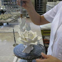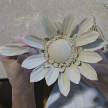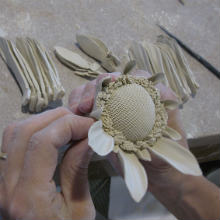- Umelec precíznou prácou rúk vymodeluje okvetné lupene a lupene, ktoré po zložení dokopy vytvoria kvety ako ruže, ľalie, slnečnice, fialky a mnohé ďalšie, ktoré sme schopní takýmto spôsobom vytvoriť. Tieto kvety sú umiestnené na stonky, alebo lustre, alebo sú uložené na listy, či iné oporné základy ako drevo, kôra, plot, skla a iné, vyrobené z presnej formy.