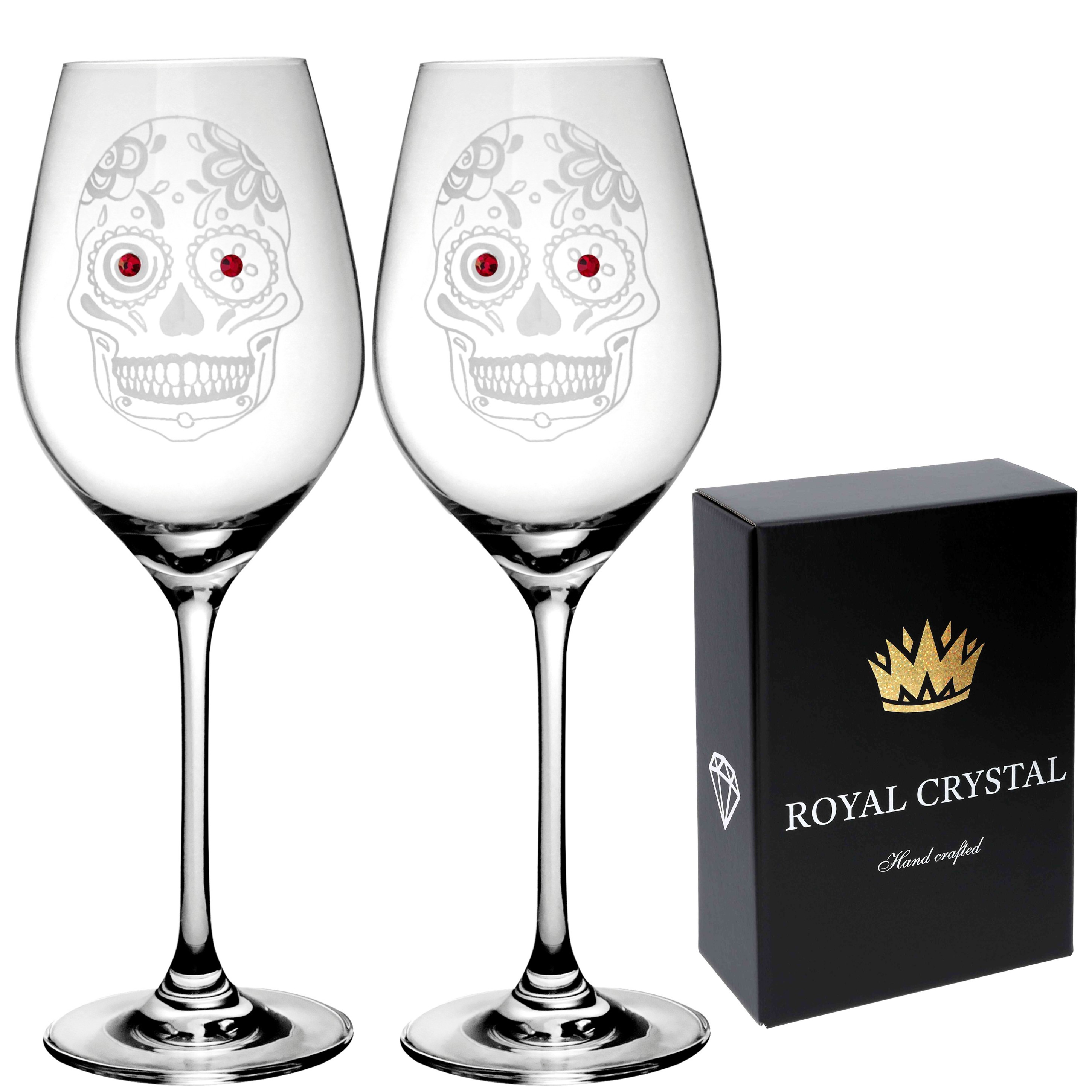 - Kalichy na víno 360ml SKULL (LEBKA) Red Crystals (2KS)